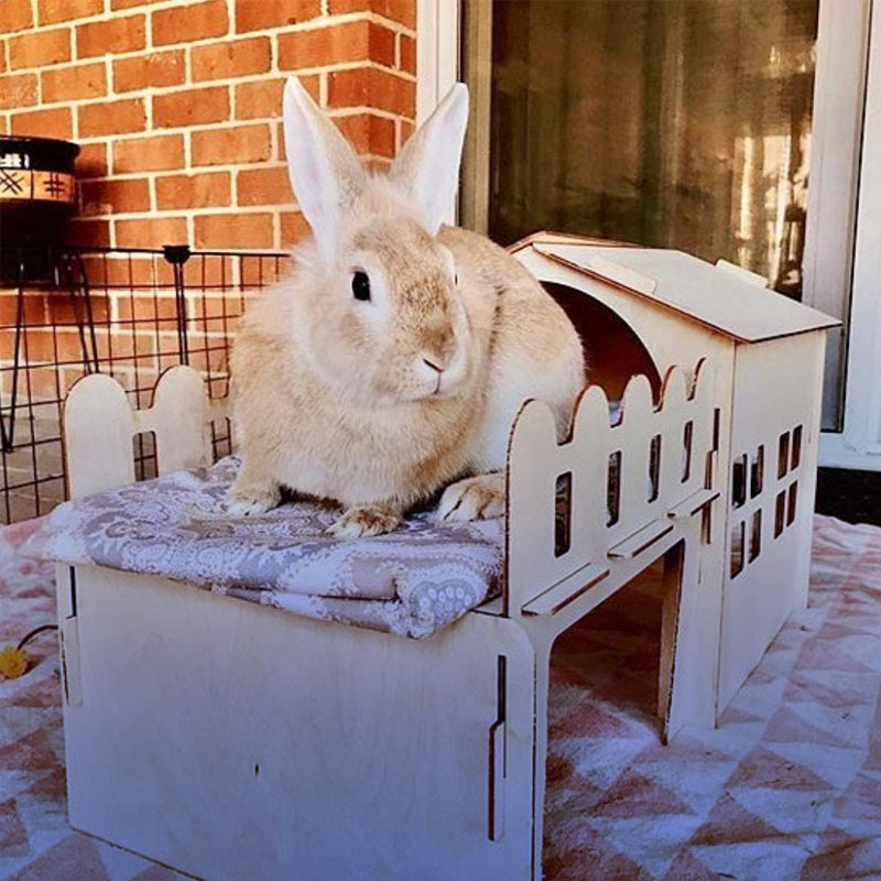 کفپوشهای علفی و مواد مختلفی مانند: پتوهای پشمی یا پارچهای، میتوانند گزینههای مناسبی برای پوشاندن کف قفس باشند. همچنین از تکههای فرش یا حوله نیز میتوانید برای ایجاد سطح نرمتر و راحتتر برای خرگوشها استفاده کنید. واجب است اطمینان حاصل نمایید که مواد داخل قفس، برای خرگوشها ایمن باشند و از خوردن آنها توسط خرگوشها جلوگیری شود. چوبهای محکمی مانند چوب صنوبر، کاه و یونجه بهعنوان جای خواب برای خرگوشها مناسب هستند. این مواد طبیعی و ایمن، بهعنوان پایگاه خواب و بازی برای خرگوشها عمل میکنند و از آسیب به پاهای خرگوشها جلوگیری میکنند. همچنین، خرگوشها از تکههای چوب لذت میبرند و این موضوع میتواند بهسلامت و رفاه آنها کمک کند.