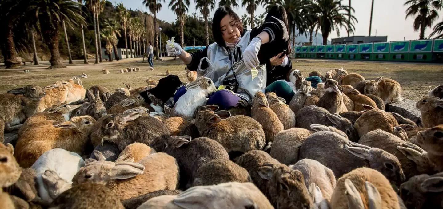 جزیره اوکونوشیما یا جزیره خرگوش‌ها، رازی تاریک از جنگ جهانی دوم را به همراه دارد. زمانی از این جزیره به‌عنوان مکانی فوق‌سری برای آزمایش سلاح‌های شیمیایی استفاده می‌شد اما تنها چیزی که از آن باقی‌مانده، هزاران خرگوش وحشی است. جزیره خرگوش‌ها اکنون به یکی از زیباترین و جذاب‌ترین جاذبه‌های ژاپن تبدیل شده است که درست مانند جزیره گربه‌‌ها، طرفداران خاصی دارد.